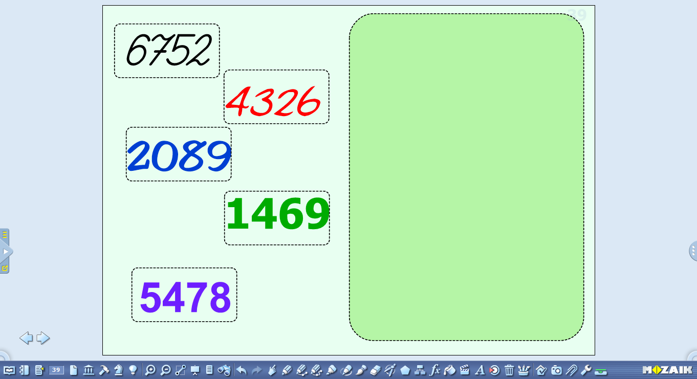 In math class, we can project number cards according to the selected number sets and relevant topics students are learning about. After a short time, around 60 seconds, we should cover the numbers which are to be written down by students from memory. They can write down the numbers in any order.